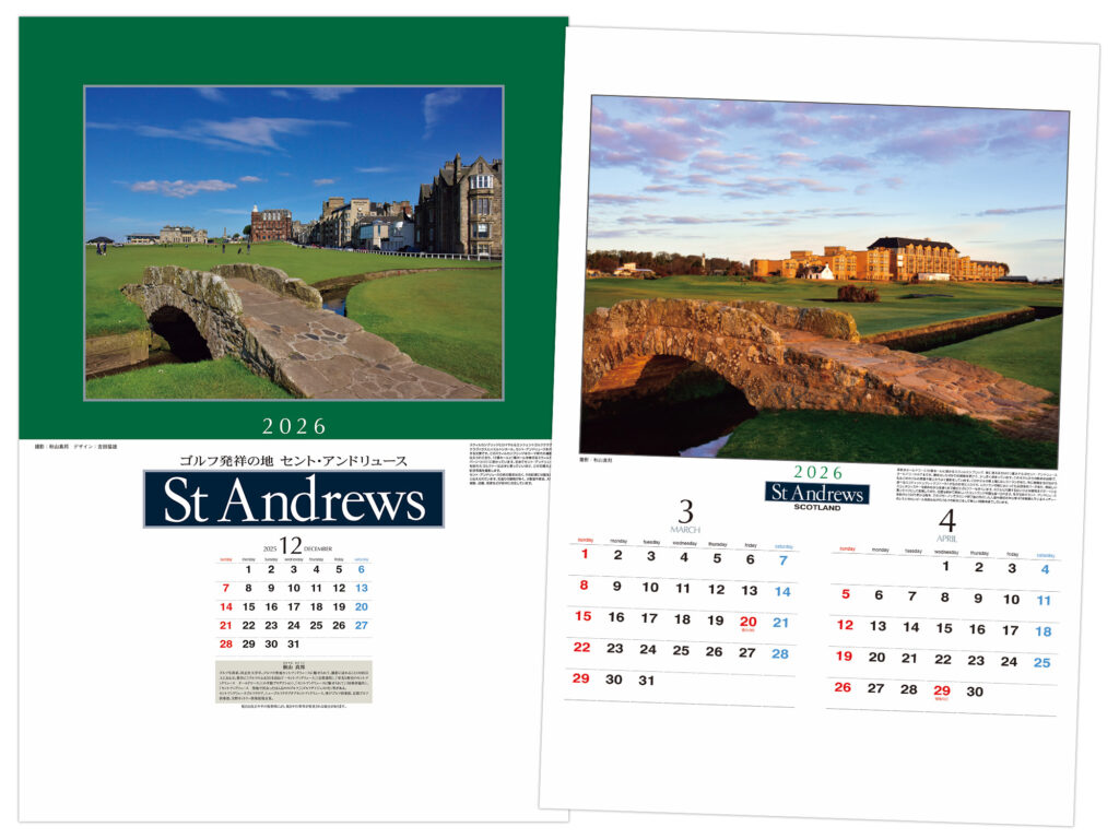 ゴルフの聖地、セント・アンドリュース公認カレンダー。セント・アンドリュースのクラブメンバーでもある、写真家の秋山真邦氏が撮影、製作した豪華カレンダーです。