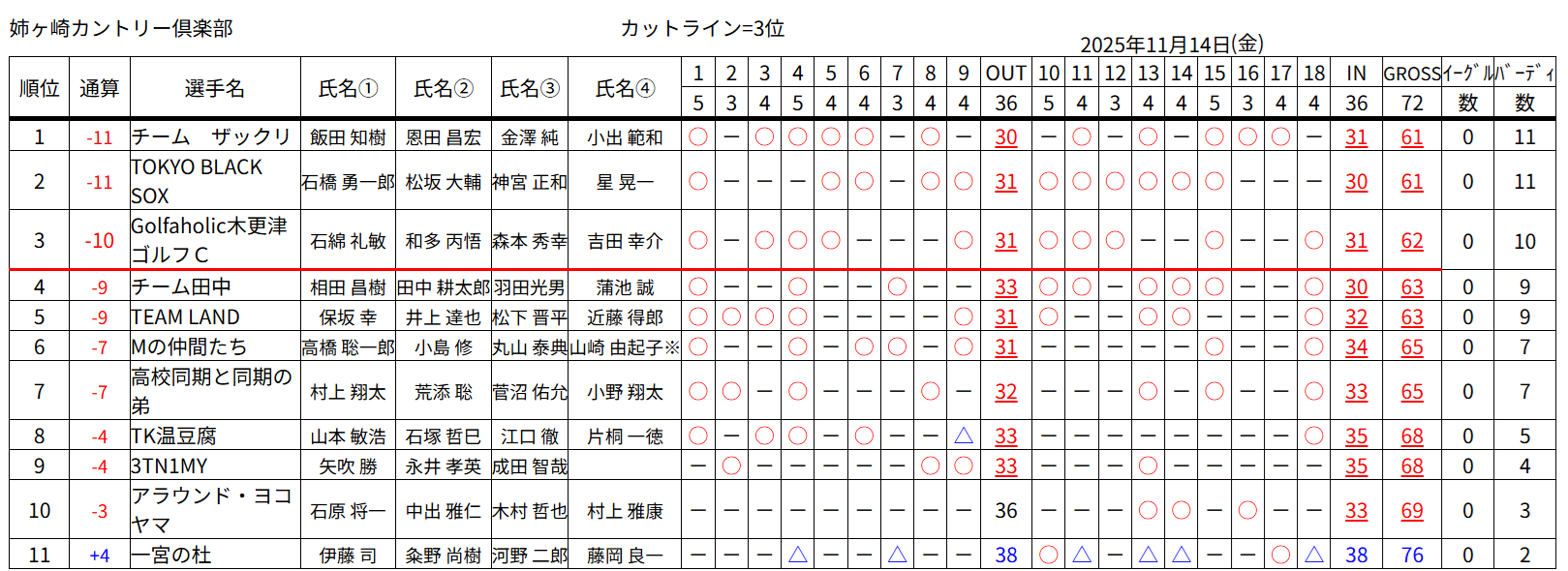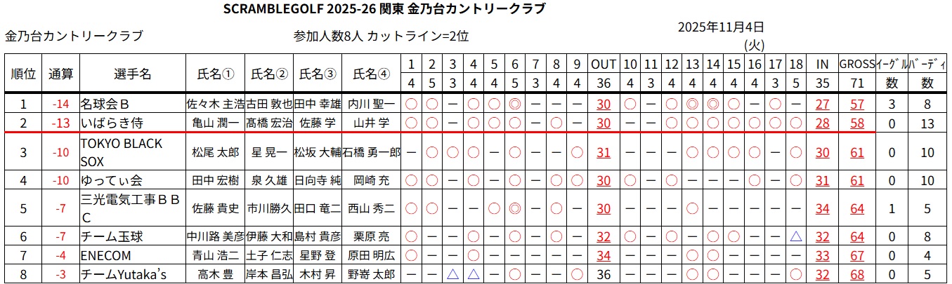 | 予選2 | 11/4(火) | 金乃台カントリークラブ | 組合せ | 成績 | |