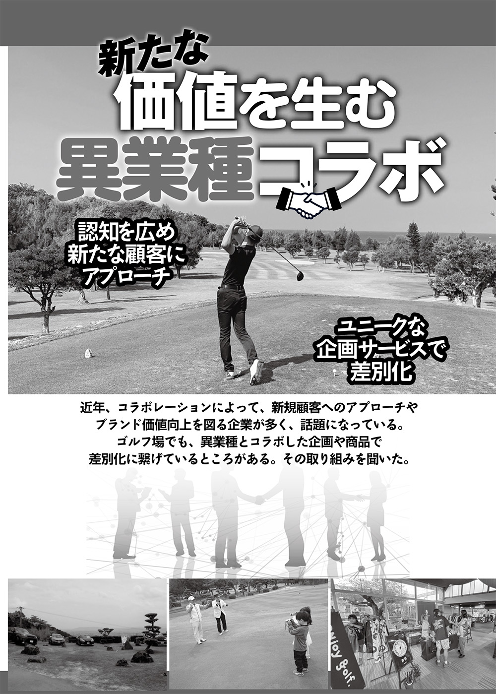 ![]() | 近年、コラボレーションによって、新規顧客へのアプローチやブランド価値向上を図る企業が多く、話題になっている。ゴルフ場でも、異業種とコラボした企画や商品で差別化に繋げているところがある。その取り組みを聞いた。 | ||