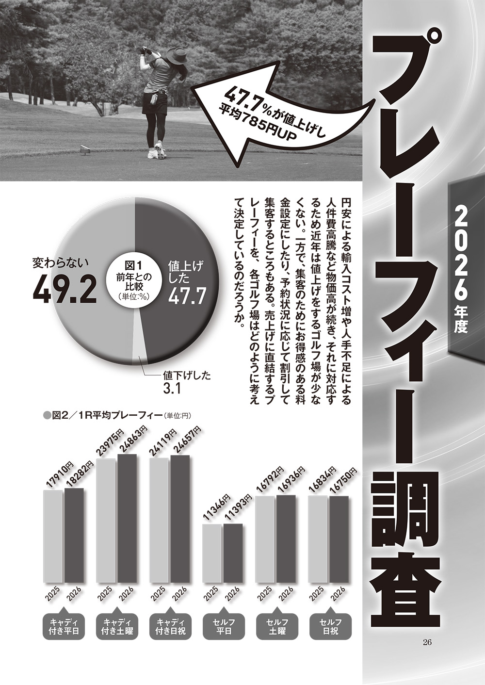 47.7%が値上げし、平均785円UP 2026年度プレーフィー調査
