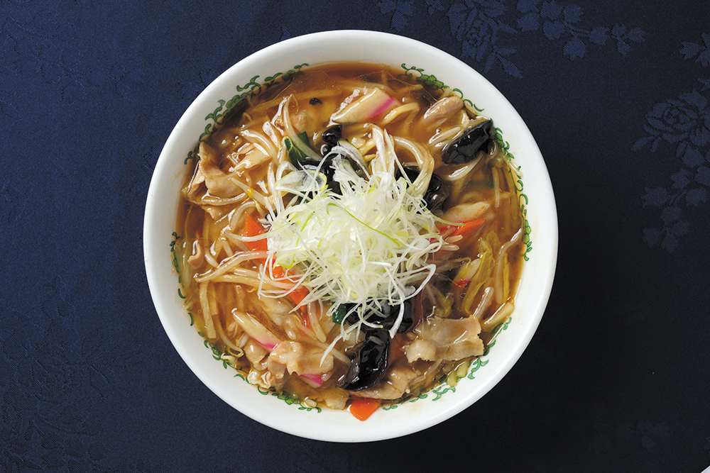 サンマー麺…メンバーや常連客の要望もあり、定番メニュー入りした一皿。醤油ベースのつゆに中太縮れ麺を入れ、モヤシ、ニラ、ニンジン、白菜、タケノコ、キクラゲ、ナルト、豚バラ肉を炒めたものに餡をかけて乗せる。野菜のシャキシャキ感が活かされた神奈川県民のソウルフード。